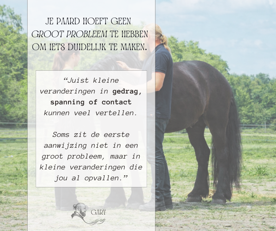 Ik heb veel paarden horen roepen: nee! Iedereen heeft wel eens een quote gezien met iets in de trant van 'Je paard is je beste therapeut'. En dat dit voor ons als mens zeker zo kan voelen, betekent het niet dat het paard dit fijn vindt. Iedere eigenaar weet dat een uurtje op stal erg kan opluchten als je niet lekker in je vel zit. Maar als je regelmatig je slechte bui naar stal meeneemt of je hart bij je paard gaat luchten, kan het paard dit erg vervelend gaan vinden. Afhankelijk van hoe gevoelig (niet te verwarren met afgehard!) het paard is, heeft elk paard hier zijn/haar grens in. Want wie zorgt ervoor dat het paard die negatieve spanning kwijt kan raken? Sommige paarden zijn hier makkelijk in, anderen weten niet wat ze er mee aan moeten. Natuurlijk kun je af en toe stoom afblazen bij je paard, maar als je veranderingen merkt in gedrag of lichamelijk, wees er dan van bewust dat jij daar een hand in kan hebben gehad. Er zijn best wat paarden die dit thema aangeven in een afstemming. Vaak geef ik de eigenaar dan een persoonlijke opdracht of oefening mee om zonder spanning naar stal te kunnen gaan. En soms heeft het paard ook wat tips nodig om zelf de spanning die nog aanwezig is te verwijderen. Met deze kleine bewustwording kunnen problemen voorkomen worden! Spanning en stress bij je paard kwijt raken is prima, mits je erop let dat het in balans blijft en geen gewoonte wordt.